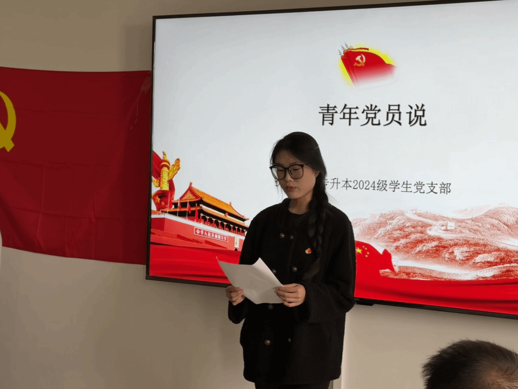 活动中,学生党员赵越结合自身工作经历,阐述了青年党员如何在实践中锤炼党性、服务同学。她表示:“作为学生干部,我们要以身作则,主动担当,在服务中践行初心使命。”党员孙宏娜则从日常生活出发,强调了青年党员应严于律己、弘扬正气,在生活中树立良好形象,传递正能量。党员王梓羽围绕学习主题,分享了如何平衡学业与党性修养的经验,提出“以学促行、以行践学”的理念,号召大家争做学习标兵,带动周围同学共同进步。