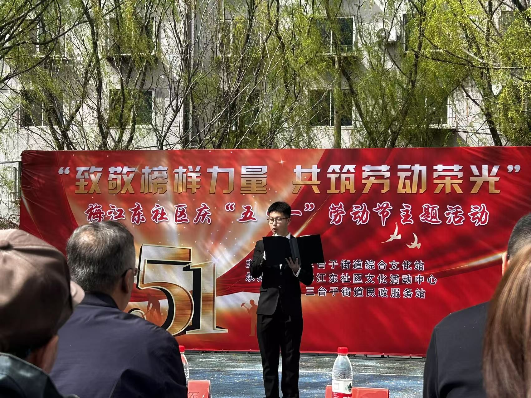 活动伊始,学院学生党员赵翊辛以专业沉稳的主持风格拉开序幕。用亲切的语调介绍节目内涵,适时与观众互动,将"致敬劳动者"主题娓娓道来。作为党员,能用专业特长服务社区,既是一份责任,也是一次心灵的洗礼。
