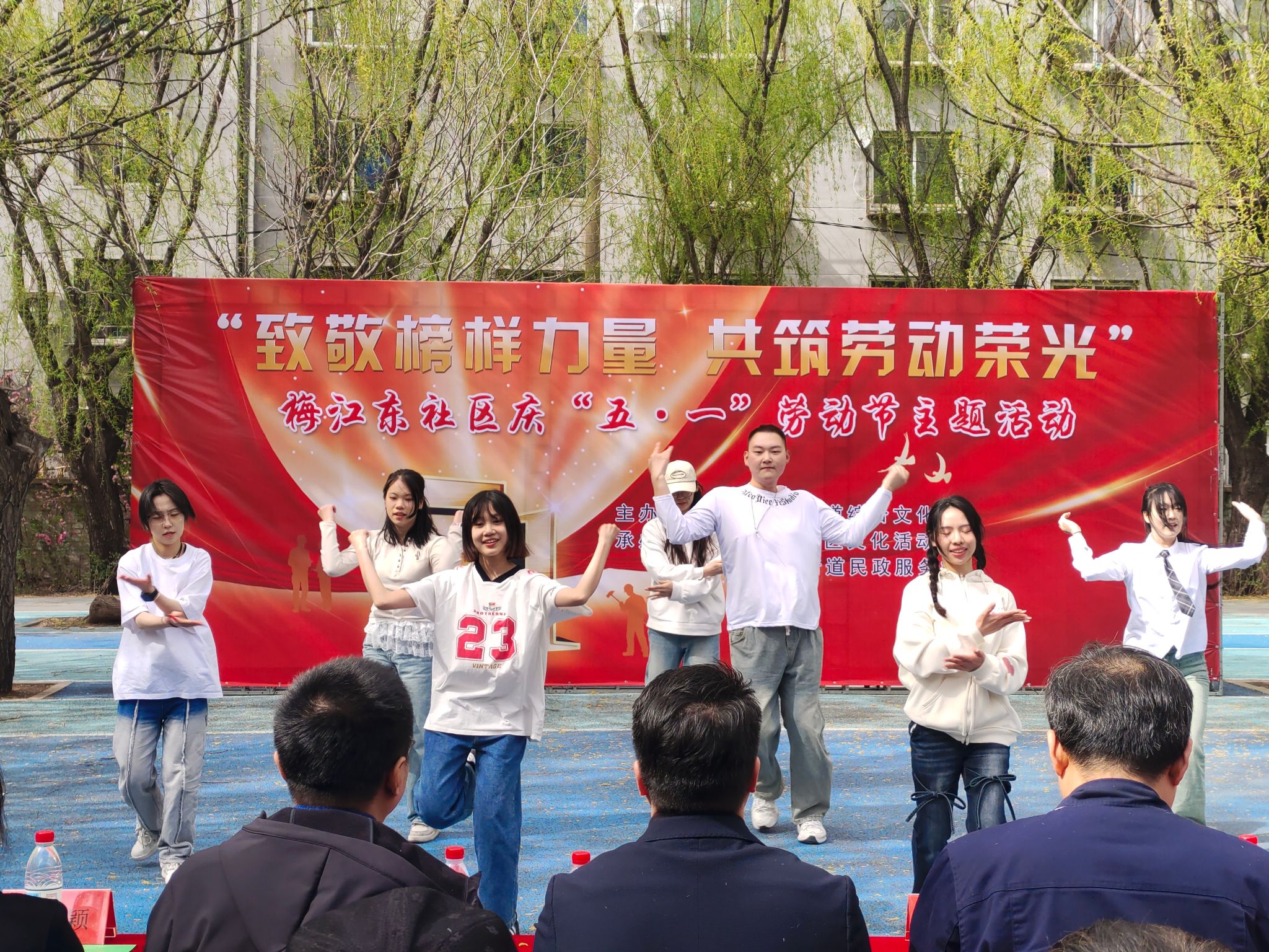 为庆祝五一国际劳动节,弘扬劳动精神,深化校地共建,4月24日下午,beat365在线唯一官网党委组织师生党员代表走进梅江东社区,参与"致敬榜样力量 共筑劳动荣光"惠民文艺演出活动。学院师生通过主持、学生代表发言、舞蹈等多元形式,为社区居民送上节日祝福,展现新时代党员服务群众、奉献社会的精神风貌。