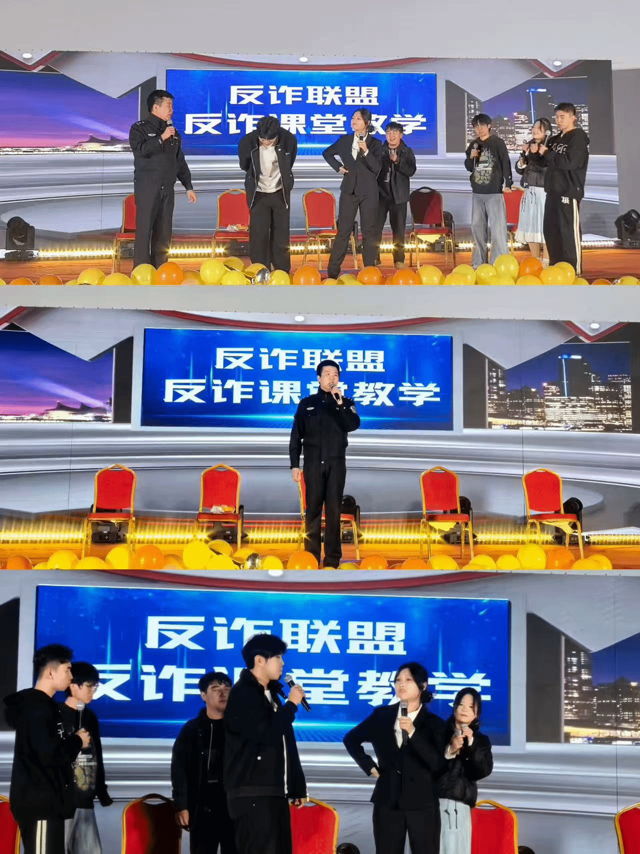 小品《反诈联盟》以诙谐幽默的剧情的形式,将常见的电信诈骗、校园诈骗案例搬上舞台,在节目的最后,学院特别邀请到了沈阳市于洪分局反诈中心民警进行了校园反诈宣传。演员们夸张的肢体语言和生动的台词,让新生在捧腹大笑的同时,深刻认识到防范诈骗的重要性,兼具娱乐性与教育意义。