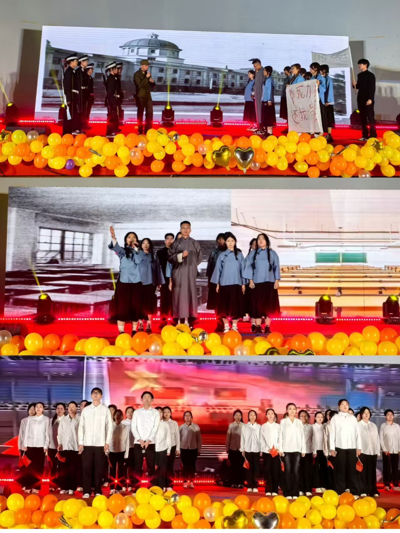 民族舞《弥渡山歌》感受民族文化的魅力,领略传统文化的博大精深。歌曲《歌曲串烧》用歌声表达青春的梦想与追求,不同风格的歌曲轮番演绎,或深情婉转,或轻快活泼,展现了护理学子多样的艺术才华。小品《空城计》对经典故事进行了创意改编,融入了校园生活元素,演员们精湛的演技将角色刻画得栩栩如生,巧妙的剧情设计令人耳目一新。舞蹈《危险派对》动感的节奏、酷炫的舞姿,展现了护理学子张扬个性、活力四射的一面。礼仪展示《秀礼秀丽》别出心裁,学子们身着统一服饰,迈着整齐的步伐,依次展示了日常礼仪、职业礼仪等多个场景,展现了礼仪之美,传承中华文明的礼仪文化。藏族歌曲《Fly》以其独特的民族韵味和高亢嘹亮的嗓音,将现场气氛推向小高潮,歌声中蕴含的对自由、对梦想的追求,引发了新生们的共鸣。现代舞《守护》用舞蹈表达守护与关爱,以细腻的肢体语言,诠释了护理职业的责任与担当。歌曲《笑忘歌》用歌声传递快乐与正能量,熟悉的旋律让全场师生共同合唱,歌声中充满了对青春的眷恋和对未来的憧憬,温馨的氛围萦绕在礼堂的每一个角落。最后情景剧《抗日救国新青年》作为晚会的压轴节目,以厚重的历史为背景,演员们用真挚的情感、生动的表演,再现了革命年代新青年们为了国家独立、民族解放而英勇奋斗的场景。剧情跌宕起伏,感人至深,让新生们在回顾历史的同时,深刻体会到今日幸福生活的来之不易,激发了大家的爱国情怀和责任担当。