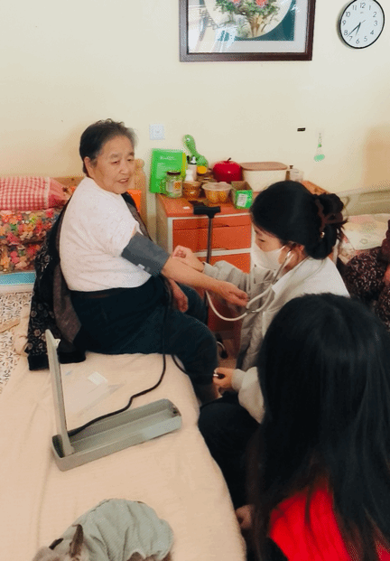 活动前,社团结合养老院实际需求与志愿者专业特长,进行细致分工与岗前培训,明确服务流程与注意事项。抵达现场后,志愿者们迅速投入服务:医疗护理组携带血压计、血糖仪等器材,为10余名老人完成基础体检,详细记录健康数据,针对高血压、糖尿病等常见问题,用通俗语言讲解食物禁忌,通俗药规范及康复锻炼方法。