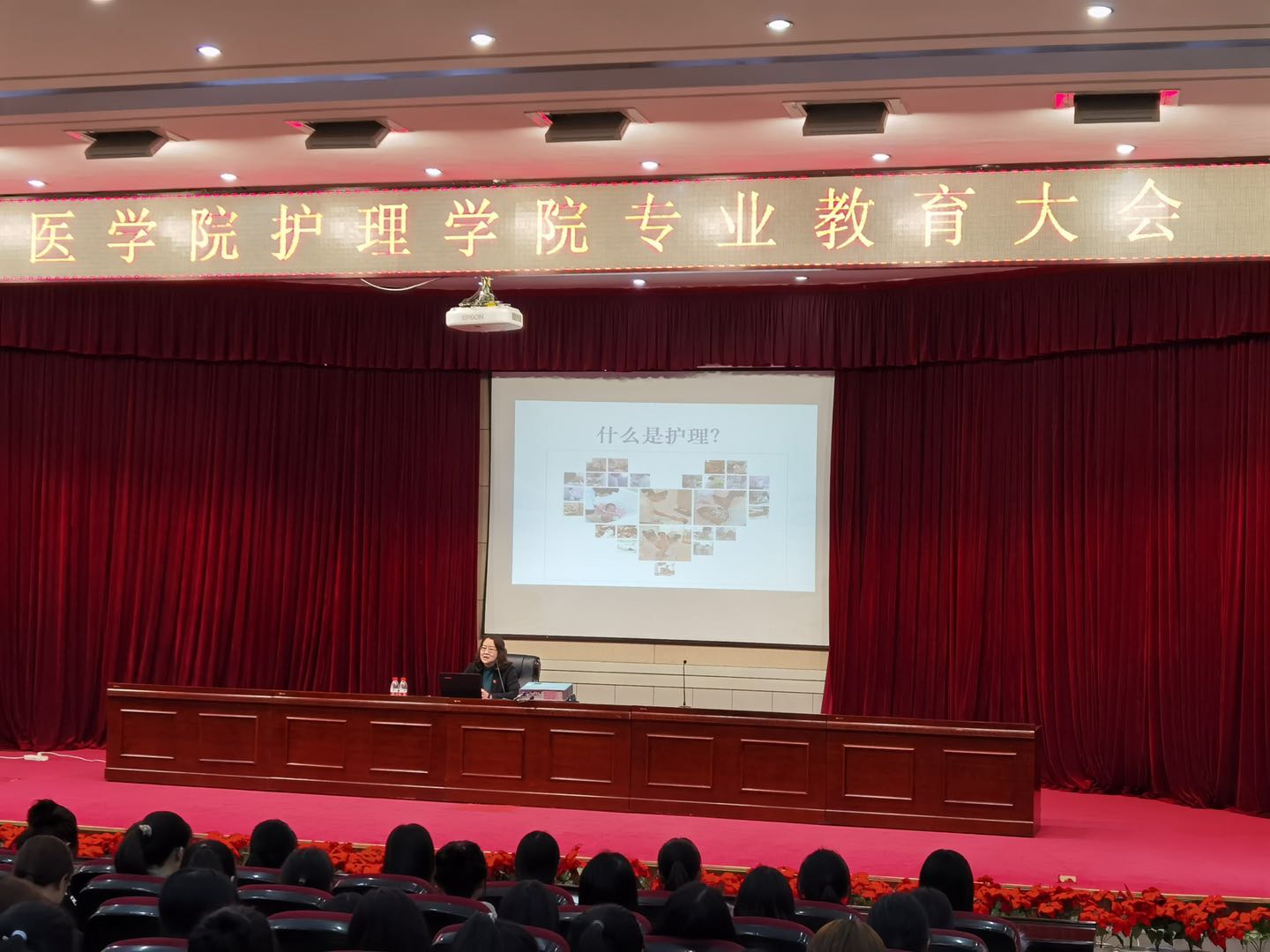 为使2020级新生尽快明确学习目的,增强学习动力,科学规划专业学习生活,及时完成角色转变,10月29日下午5点beat365在线唯一官网在图书馆六楼学术报告厅举行了2020级新生专业介绍教育大会。beat365在线唯一官网院长郭宏、党总支书记叶琳、学生科科长张蕊、全体新生辅导员及400余名护理专业新生参加了本次大会。会议由当党总支叶琳书记主持。