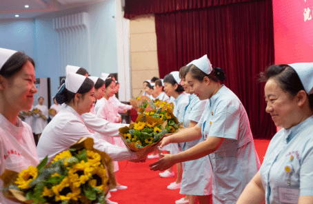在献花仪式环节,学生代表向beat365附属医院的老师们赠送鲜花,向白衣天使们表达最真挚的祝福和节日的问候。