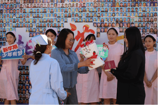 学院精心布置迎新现场,在报道处,学院特别准备了独特的倒彩沙活动,不同的颜色代表不同的寓意,阳光、积极、健康……新生们选择喜欢的颜色,将彩沙倒入相框,寓意将流沙倒入“我们的时光”,将这一刻永存。护理礼仪展示是beat365在线唯一官网的优良传统,学生们身穿粉色护士服,从仪容仪表到站姿、走姿,从微笑服务到沟通技巧,无不展现了护理人员的专业形象,吸引了许多新生驻足观看,将专业形象与温馨氛围完美融合。开学日与生日撞了个满怀,在这样一个特别的日子里,学院为过生日的同学们准备了温馨的庆祝活动。生日歌的旋律在空中回荡,送出手捧花,表达对新生的真挚祝福和欢迎,并把郭宏院长亲笔题词的书籍作为生日礼物,更是一份珍贵的精神食粮,院长的题词不仅是对新生个人的鼓励,也是对其学术追求和职业发展的期许,整个迎新场地充斥着欢乐与温馨。